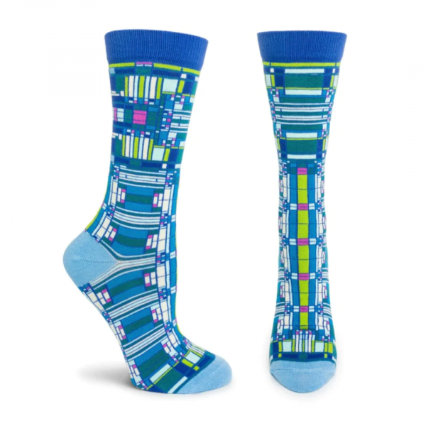 Product Description Adapted from the matched pair of art glass skylights at the entrance to Frank Lloyd Wright's two-story octagonal studio at his Home and Studio in Oak Park, Illinois. Women's crew sock from Ozone Design inspired by the designs of Frank Lloyd Wright. Made in Colombia. Contents: 83% Cotton / 16% Nylon / 1% Spandex.
