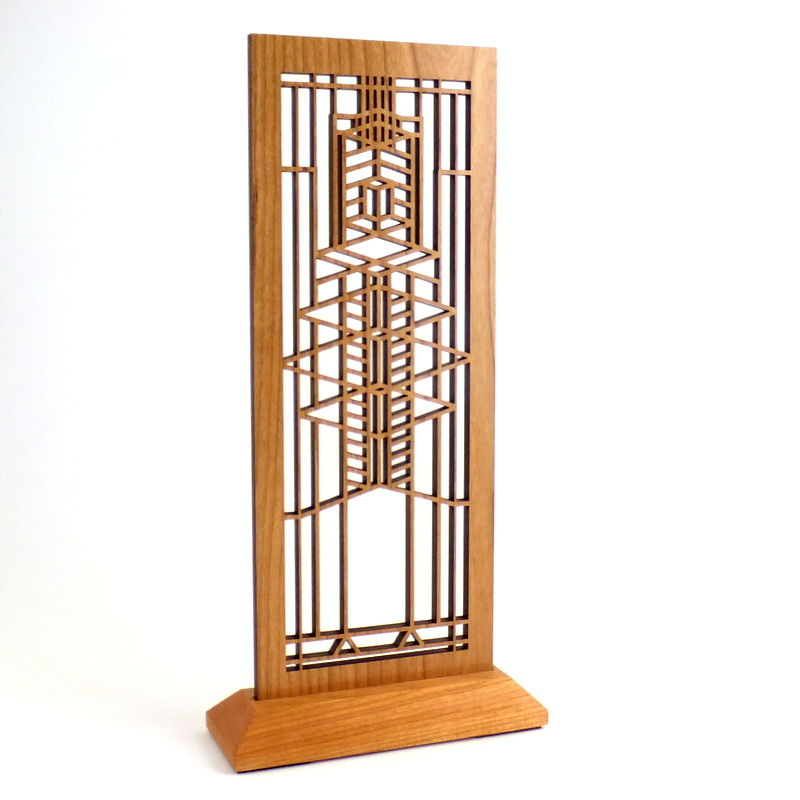 Perfect for a table, desk or windowsill. Decorative laser cut wood with base.