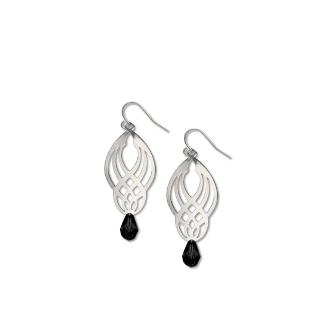 Product Description Opened in 1892, the Schiller Theatre Building was designed by the firm Adler & Sullivan. At the time of its construction, it was among the tallest buildings in Chicago. Originally funded by German investors, it was projected to be used for German-language operas and cultural events. This earring design comes from a stencil used for decoration. ERS8936 Finish: Solid brass, electro-plated with non-tarnishing silver finish, glass beads, ear wires are hypo-allergenic Dimensions: Hangs approx. 1.75" (Gift Boxed with Provenance Card)