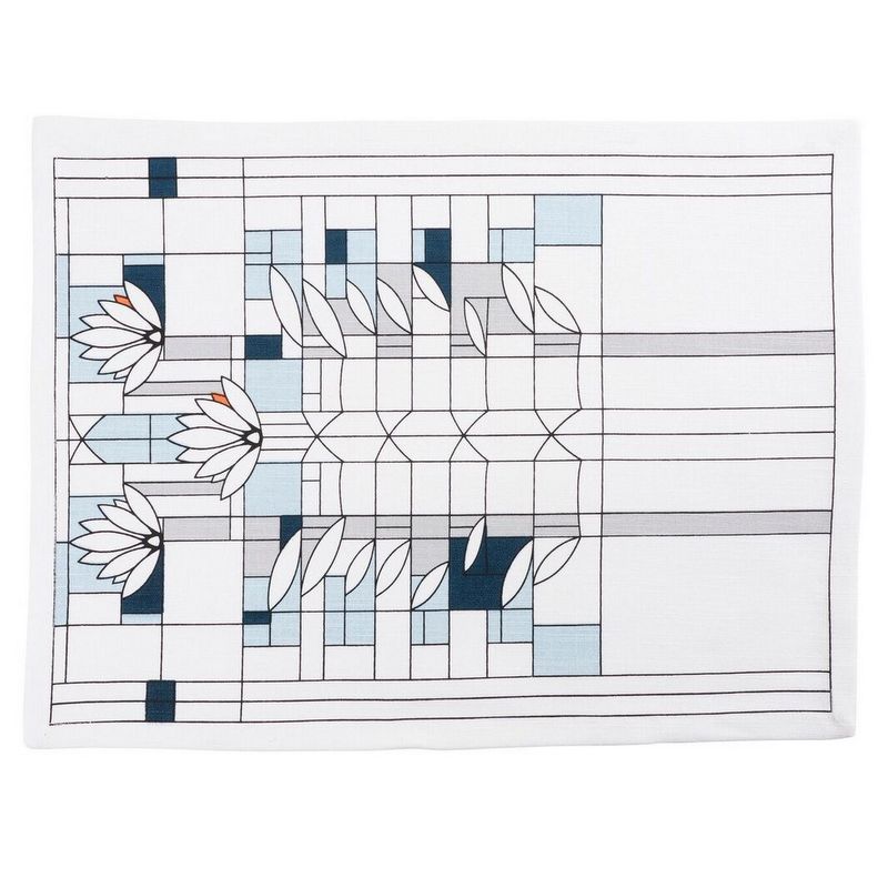 This modern placemat, inspired by the work of Frank Lloyd Wright, marries form and function with a beautiful printed pattern that elevates any tabletop with a modern elegance. ‘Waterlilies’ is an art glass window design that Wright never brought to life, but its graceful lines and tranquil composition makes it an iconic example of Wright’s organic architecture.