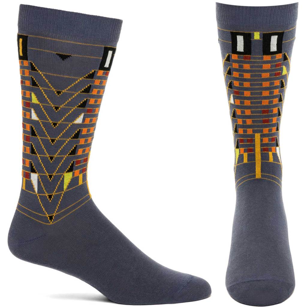 These socks are based on one of Wright’s most famous motifs. This opus of symmetry is found in the Darwin D. Martin house and has been widely influential in art and architecture ever since.