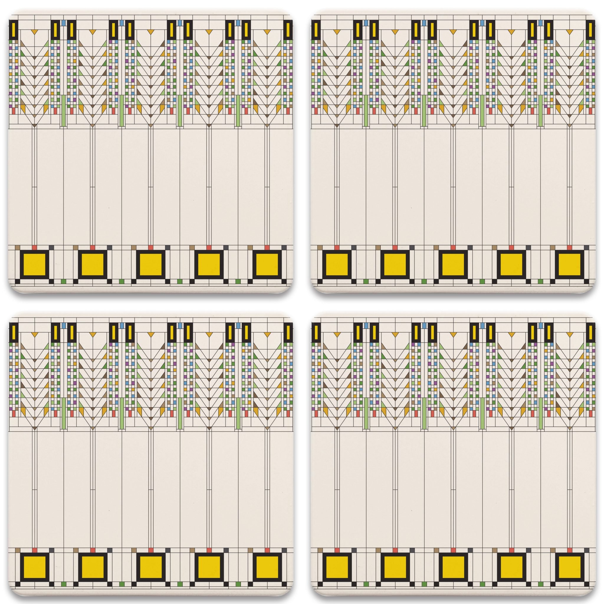 Wright’s Tree of Life art glass window design from the Darwin D. Martin House in Buffalo, NY (1903) is featured on these absorbent stone coasters.
