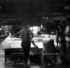 Apprentice “Jack” Howe standing next to Wright in the Hillside Drafting Studio on the Taliesin estate. Most, if not all, of Wright’s designs executed after World War II were worked on in this room. (Photograph taken by Pedro Guerrero, 1953. Property: Pedro E. Guerrero Archives. *The photograph is also in a delightful book by Guerrero, “Picturing Wright.”)