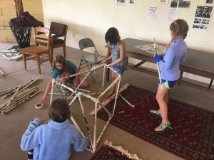 Jane Stenson: My grandchildren love the camp. The learning environment is so different from their schools. It’s experiential in that the first day is a walking tour of the land and buildings which gets translated into the hands-on projects produced throughout the rest of the week. This progressive approach encourages thoughtful pursuit of ideas. Concepts or understanding arise from their experiences with the land, building materials, and extended conversations about construction. Because they have attended the program for several summers, their understanding of the functional relationship between nature and man-made structures has increased, creating the foundation for them to produce more sophisticated and artistic constructions.